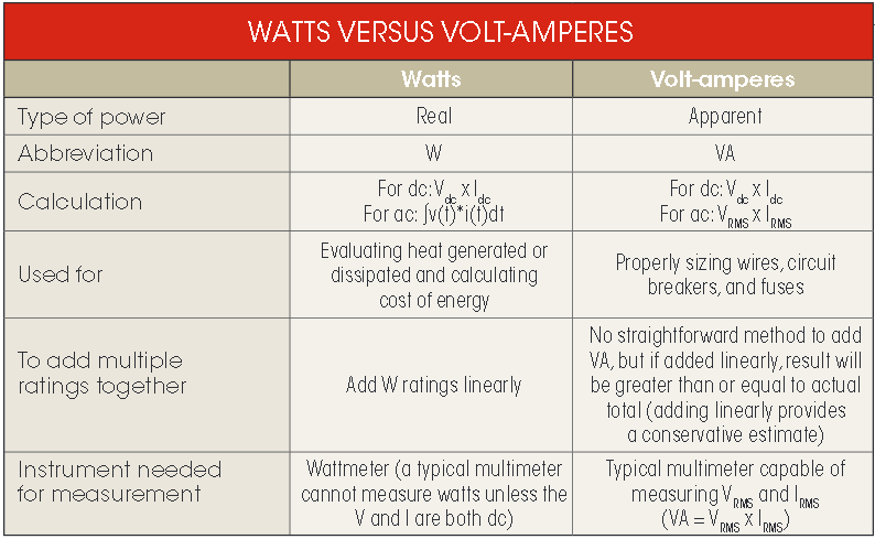 Таблица перевода Ампер – Ватт: