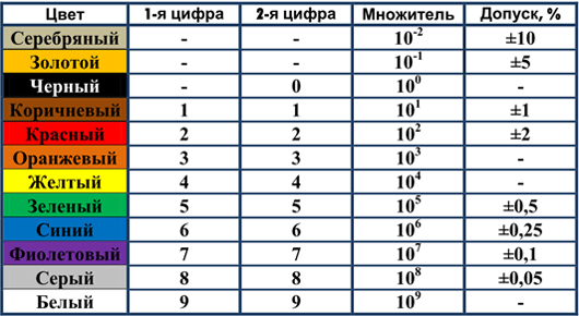 Цветовая маркировка резисторов с 4 полосами.