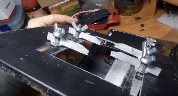 - Зажимы сделаны из распиленных пополам болтов, и зажимаются при помощи гаек барашек.