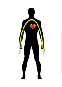 - Если человек берет оголённый провод, находящийся под напряжением, двумя руками. Именуется этот путь рука — рука и проходит между руками, затрагивая органы дыхания и сердце.