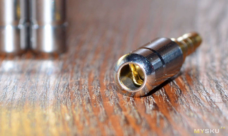 Из нареканий отмечу длинную ступеньку, являющейся частью общего контакта — не будь её, общая длина штекера в корпусе могла бы получиться короче. Маркость корпуса — очень хорошо собирает отпечатки.